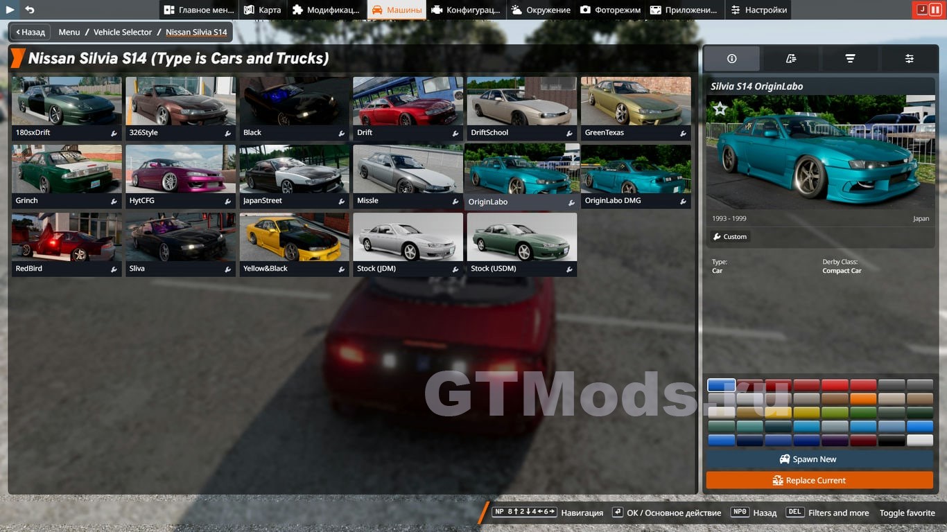 S14 с переделками, чего-то сверх не ждите! Конфиги сделал вроде интересные, тюнинга в моде более чем так что под себя собрать будет не проблема. Основа мода от Scompa и тюнячками от Vi1zx и Shixz.