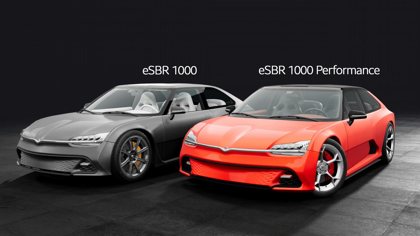 • eSBR 1000 Performance — более 1100 л.с., полноприводный городской автомобиль с черной крышей и зеркалами
