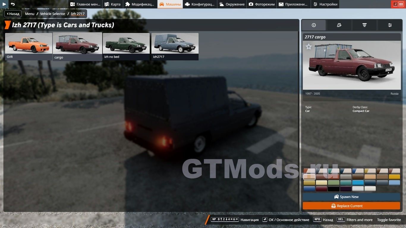 ИЖ 2717 (Beamng) v1.0 (0.38.x) 07 февраль 2026 113 1 60 1 2 3 4 5 - 4 конфига- Опенабл есть😿- Фары имеются- Кривая модель- Поскринить покататься пойдёт👌Автор: iliksbeam (iatutachocvali) Добавил: Rifler Скачать c modsfire 74,8 мб Похожие модификации: Mazda 323 Familia/Protage 1999 v1.2 Porsche Carrera GT (Beamng) v1.0 Edit Ваз 2105 Riva v1.0 для BeamNG.drive (0.27.x) Nissan Silvia S14 v1.0 для BeamNG.drive (0.25.x) Комментарии: Аноним Комментариев: 0 | Модов: 0 Сегодня, 15:55 О имба, предлагаю ещё сделать Иж-2126 Ответить Прокомментировать Введите два слова с картинки: Отправить