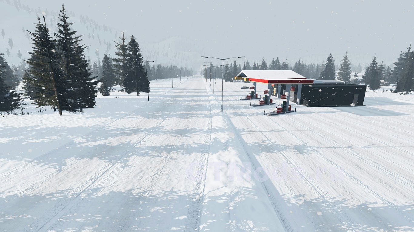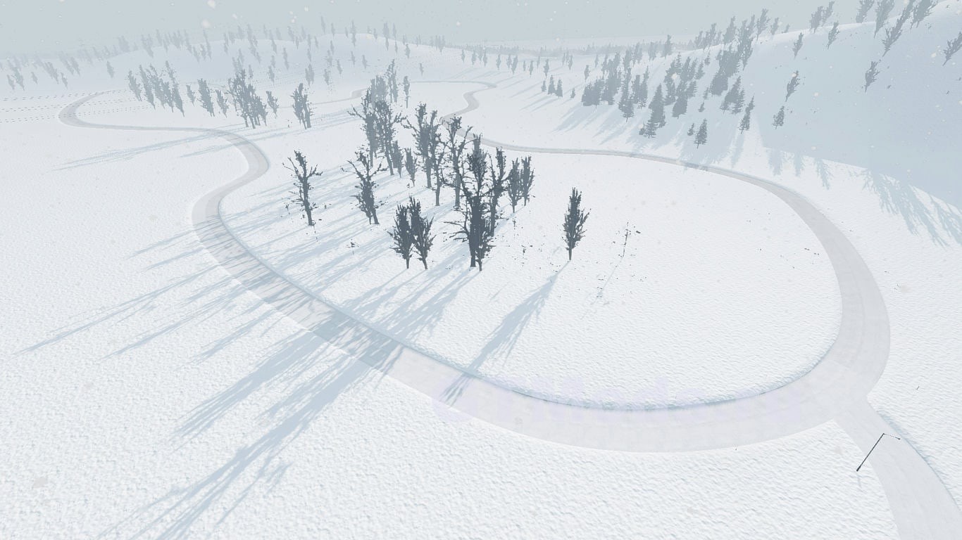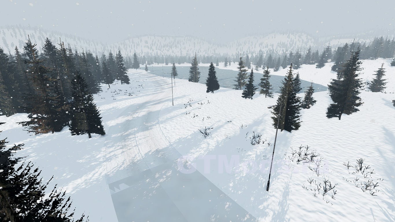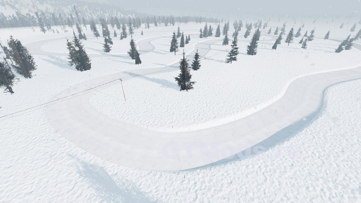 Карта представляет собой вымышленную локацию в сельской местности Латвии, включающую извилистые дороги с перепадами высот, горную/горную дорогу и несколько зимних трасс.