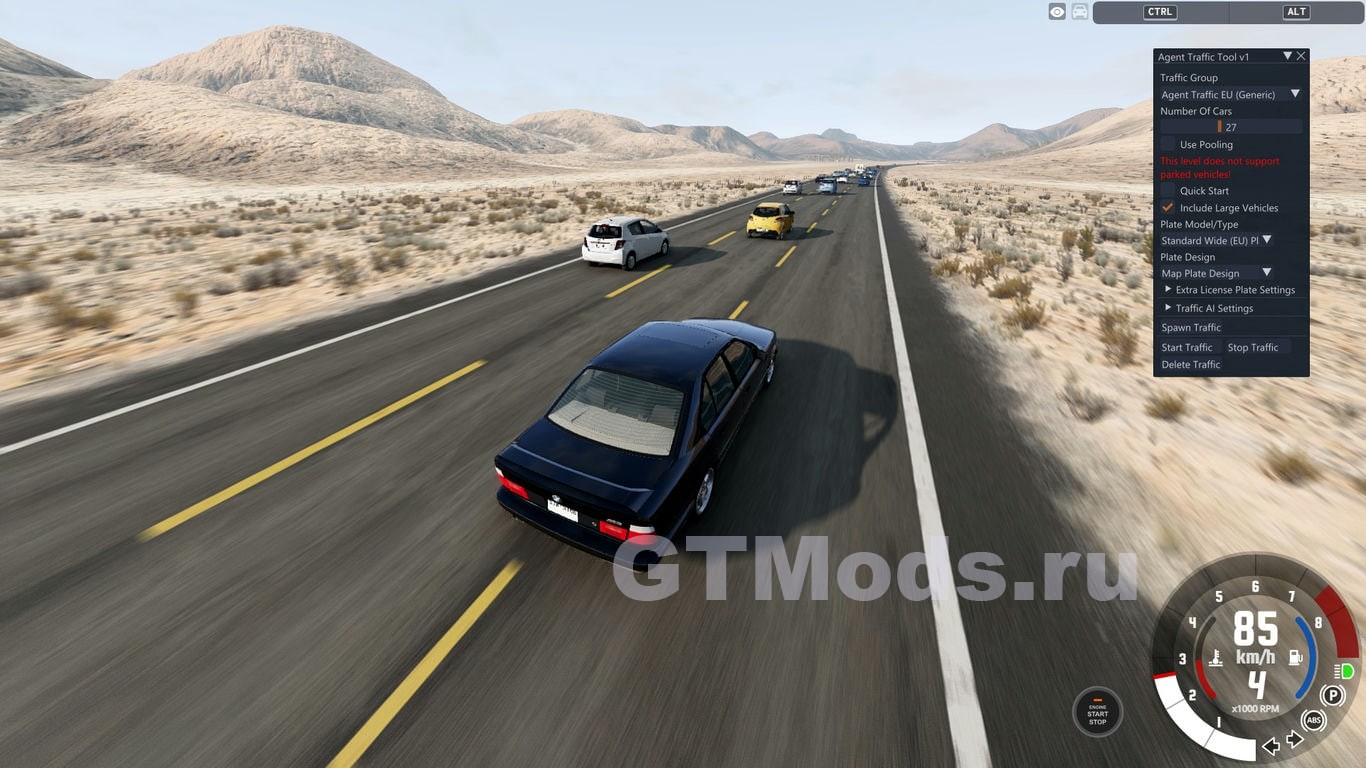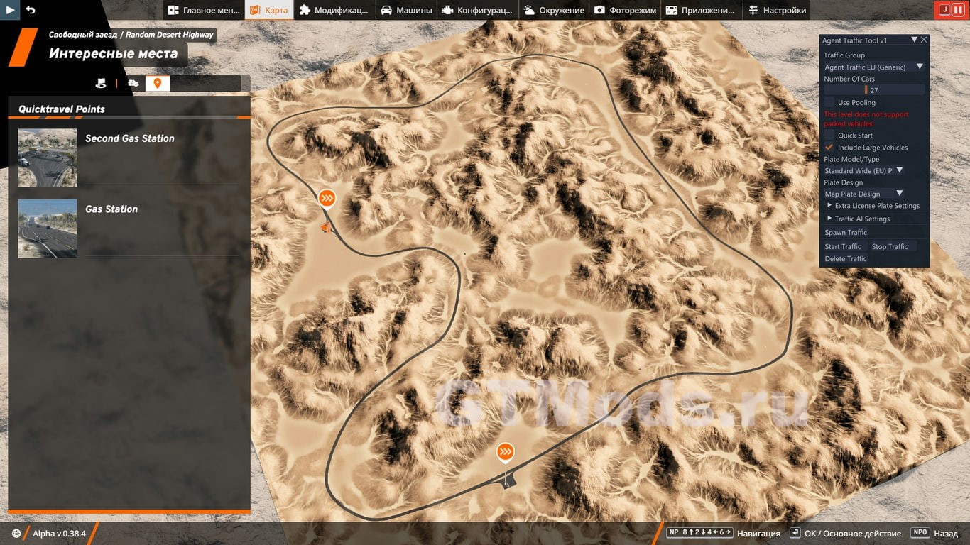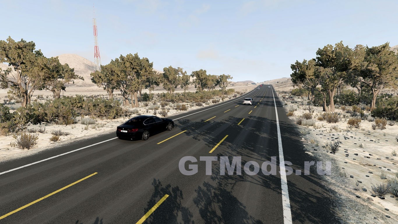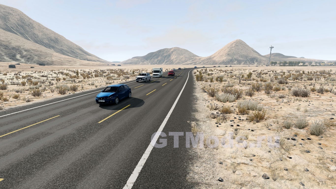Это карта пустыни с односторонним шоссе для BeamNG. Главная цель проста: быстрая езда и маневрирование в потоке машин. Поэтому здесь нет скрытых дорог или внедорожных участков для исследования — это простая кольцевая трасса на шоссе, созданная для спокойной езды и игрового процесса в потоке машин.