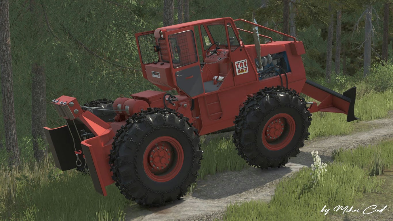 TAF 657 – IRUM SA – это мощный сочлененный лесозаготовительный трактор. Модификация создана на основе Farming Simulator 22 и включает в себя переработанную 3D-модель.