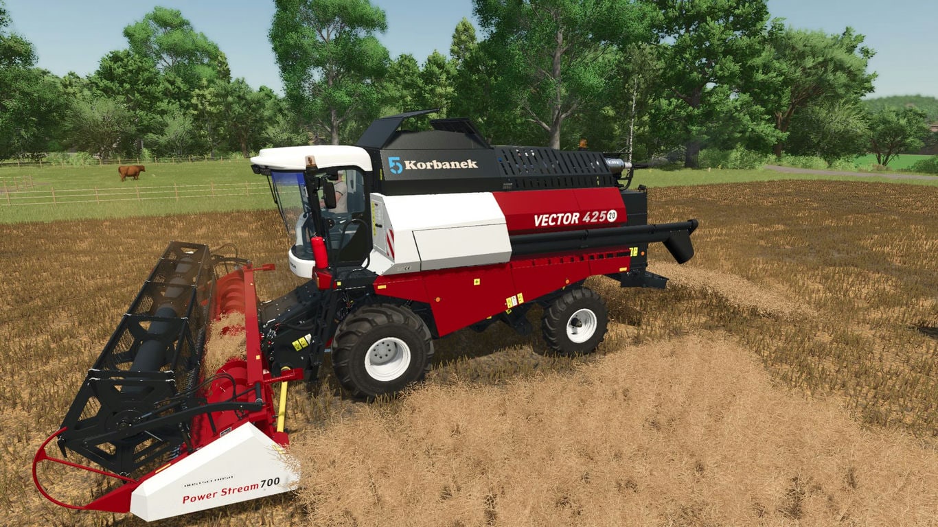 Комбайн Vector 420 и 425, объем бункера 6000 литров, мощность двигателя 220 л.с., максимальная скорость 27 км/ч. Мод имеет следующие конфигурации: