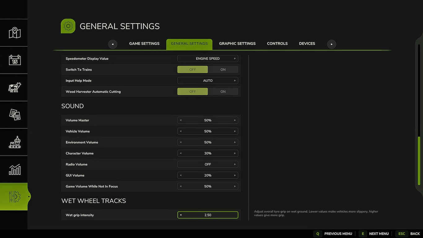 Ползунок в настройках игры регулирует силу эффекта сцепления на мокрой дороге.